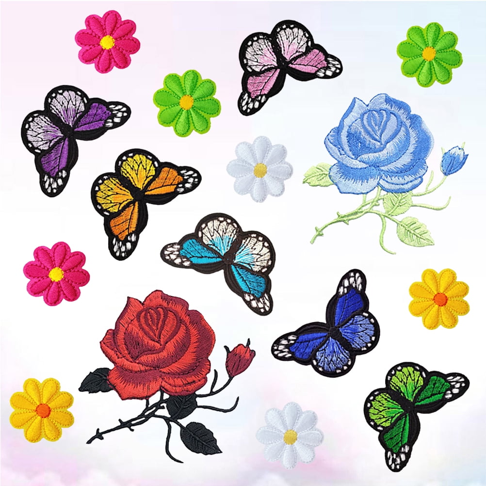 Zeng Decorative Patches 2 Pieces Butterfly Flower Embroidered Iron On Patch Embroidery Applique By Diy Cloth Art Embroidery Decoration Jeans Hats Blouses Sewing Sew Shirts Appliques